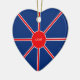 Love and light red sun on blue background ceramic ornament. Love is in one side and light text on the other side. Love and light text can be customized.