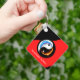 The key chain is made of metal and really sturdy. The flower design is really cheerful. The logo and colors are clear and crisp!