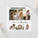 Elegant, Modern Heart Script Wedding 5 Photo Collage Thank You Card in Black and White. Stylish, minimalist wedding card template featuring five (5) grid photo collage on the front and one (1) photo on the back side. "Love and thanks" text in a cursive hand lettered calligraphy cute heart script font with swash tail. Personalize with your name and thank you message. If You need help or matching item, please contact to designer!