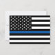 Thank your family and friends this holiday season with one of our personalized photo cards. This design features a black and white police thin blue line American flag to decorate around your picture. Under your photo is an area in blue for the sentiment which reads "Love and Thanks" and your family name below that may be personalized. The back of the card also has the police thin blue line American flag Replace the photo shown with your own for a one of a kind greeting that your family and friends will love! Designed by artist ©Tim Coffey. Photography © Storytree Studios, Stanford, CA.