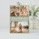 Elegant, Minimalist Sage Green Hand Lettered Wedding 3 Photo Collage Thank You Card. Stylish wedding thank you card template featuring (3) three photo on the front and one photo on the back. With the text "Love and thanks" in a cursive hand lettered typography script font in black on pastel dusty sage green background. Personalize the custom name and thank you message. If you prefer to handwrite your note, just delete the sample text to make more space. If You need help or matching item, please contact to designer!