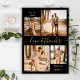 Elegant, modern, minimalist black and gold hand written photo collage personalized wedding thank you card. Stylish wedding thank you card template featuring four (4) photo on the front and one (1) photo on the back side. With the text "Love and thanks" in a cursive hand lettered typography swash-tail font script in gold color on black background. Personalize your name and thank you message. If you prefer to handwrite your note, just delete the sample text to make more space.