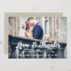 LOVE AND THANKS TYPOGRAPHY WEDDING PHOTO THANK YOU CARD. Design by Elke Clarke© for MonogramGallery printed by Zazzle. Send out your wedding thank you message as newly weds to your friends and family using this retro, thank you wedding photo card with the words "Love & Thanks" written in a white bold handwriting typography script text overlay. Replace the sample photo with your own. Add your personal thank you message on the back or leave blank and hand write your message in person. Other colors available. Burlap linen background is a printed photo effect.