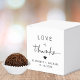 Chic wedding favor box featuring "Love + Thanks" in simple typography and a stylish modern script, and your names and wedding date.
