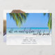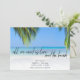 Perfect for your beach wedding, "All we need is love and the beach" design save the date cards are customized with your wedding date, names, location and photo on the back.