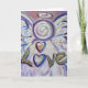 The word "Love" is painted in a soft white and pink pastels with purple in the background. The angel is framed with blue and purple accents. The word "Love" is in gold. The acrylic painting has a textural contrast and sparkle from a light layer of glitter. This angel greeting card or note card is wonderful for Valentine's Day, Christmas, or holidays & special occasions. You can personalize this card with your own custom text!