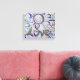 Guardian angel word art painting featuring "Love". The pink and white pastel angel is painted with colors accents of silver, purple, blue, gold, orange, and yellow. The acrylic painting has a textural contrast and sparkle from a light layer of glitter.