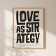 A bold typographic statement about connection and intention. “Love as Strategy” isn’t decoration — it’s a mindset. Strong, hand-shaped letterforms add a raw, human edge while keeping the composition clean and focused. The reduced black and neutral tones create a timeless, understated look that integrates effortlessly into modern interiors. Designed in a 3:4 format for balanced proportions. Available sizes: 12×16, 15×20, 18×24, 24×32, 30×40 inches. Works as a focal point or within a gallery wall — ideal for living rooms, offices, or creative spaces. Colors may vary slightly due to screen settings. Frame not included.