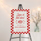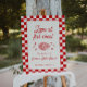 Celebrate your Love at First Slice with this chic Italian-inspired bridal shower welcome sign. Blending playful pizza puns with a retro red and white checkered design, it's perfect for a stylish pizza party.