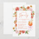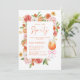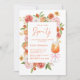 'Love at first Spritz' bridal shower invitation with a watercolor floral frame with pink, white and orange flowers, citrus slices, and a spritz glass with a pink bow.