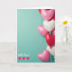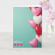 The front design shows a cascade of glossy heart-shaped foil balloons clustered down the right side, their rounded surfaces catching soft, diffused light. The hearts come in ruby red, ballet-slipper pink, and alabaster white, with gentle highlights and crinkled foil texture that makes them look freshly inflated and ready to float. Some balloons are cropped at the edge, as if more are drifting in from off the card, giving the scene a buoyant, affectionate lift ❤️. A calm teal background fills the rest of the space, leaving open room on the left where the message can breathe and feel unhurried. Thin silver ribbons curl and weave between the balloons, like they’ve been loosely gathered for someone special 🥰. At the bottom left, the words “With love!” appear in white flowing lettering, standing out clearly against the teal. Just beside the phrase sit three small fuchsia heart icons, neatly arranged as bright accents near the lower edge.