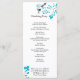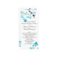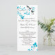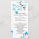 This wedding program features two birds with blue accents and a tree branch with matching blue leaves.