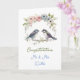 Newlyweds congratulations card with sweet illustrated love birds and pretty blue and pink flowers. Add the couple's names in the personalize area. generativecontent