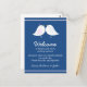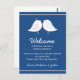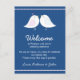 This wedding welcome bag card features two cute love birds facing each other, a navy blue background and customizable text. The background color can be changed by choosing the customize it button and then edit. This card can be attached to welcome gifts/bag for out of town wedding guests.