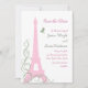 A tall, elegant and stately Eiffel Tower decorates this wedding invitation. The subtle shades of pink and the fancy French script accent the romance of your Parisian themed evening. This invitation is shown on the basic paper; however, I recommend the weight and texture of the linen paper. This Save the Date is part of a full wedding line; however, if additional items are required just let us know.