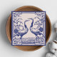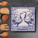 Love Birds two Cranes Blue Art Deco Art Nouveau Ceramic Tile