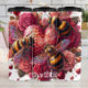 Three beautifully detailed bumblebees with iridescent wings hover around a central, textured heart-shaped honeycomb, inscribed with "Bee Mine." This vibrant and romantic design is set against a lush backdrop of red and pink roses, interspersed with small heart candies. It's a sweet, affectionate, and visually rich illustration perfect for a tumbler.