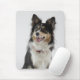 Awww ... Nothing says love like the sweet innocent face of a Border Collie puppy dog. This cute canine mouse pad features a portrait of a happy Tri-color Border Collie Pup highlighted against a creany gray pale background.