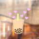 Bubble milk tea -- black milk tea with boba pearl tapioca with pink hearts.