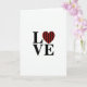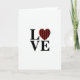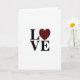 This greeting card features the word “LOVE” in large, uppercase black letters centered on a bright white background, making the design feel direct and easy to read. The “O” is replaced by a heart, turning the typography into a simple little scene of affection ❤️. That heart is filled with a buffalo plaid pattern, mixing rich red with deep black lines that add a cozy, wintry touch 🥰. With no characters or scenery, the focus stays on the heart as the stand-in for a warm embrace between two people. The strong contrast between the black letters and the white space makes the red heart draw your eye first, like a quiet wink in the middle of the word. The text sits across the middle of the front in a straight line, with the heart neatly aligned where the “O” would be. The plaid heart shows crisscrossing red squares and black stripes, centered between the “L” and “V.”