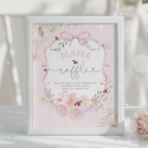 Love Bug Diaper raffle ticket Pink Bow Enclosure Card