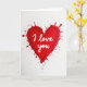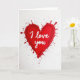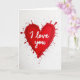 This card shows a large red heart in the center that looks like thick paint spread across the page. The heart has a slightly uneven texture, and small red droplets burst outward from the edges like an excited splash. The background is white, with tiny silver-gray speckles scattered around the heart for a soft contrast. Inside the heart, the words “I love you” appear in smooth white cursive-style lettering, placed right across the middle. The bright white text stands out clearly against the deep red, making the message easy to spot at a glance. It feels meaningful to give because it’s simple and direct, like saying what you really feel without overthinking it 🥰. Whether it’s for a partner or someone close, it carries warmth and closeness in a way that’s hard to miss ❤️.