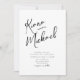 Elegant handwritten script text and brush stroke accents are used to create the pieces of this beautiful, modern wedding suite. The wedding 'Invitation' card shown here also features a unique design for your initials on the reverse. Easily add your own image, names, and event details using the provided template. Search ID940 to see other pieces and color choices for this set.