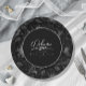 Elegant handwritten script text and brush stroke accents are used to create the pieces of this beautiful, modern wedding suite. The coordinating wedding paper plate shown here also features a hand drawn floral pattern of white on black, for an eye-catching background. Easily add your own message, names and wedding date using the provided template. Search ID940 to see other pieces and color choices for this set.