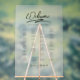 Elegant handwritten script text and brush stroke accents are used to create the pieces of this beautiful, modern wedding suite. The acrylic wedding seating chart shown here also features a large 'Welcome' and an alphabetical list for your guests to find their tables. An optional frosted glass effect background has been provided to highlight your text. Easily add your guest list, names, and wedding date using the provided template. Search ID940 to see other pieces and color choices for this set.