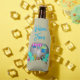 Can or bottle holder with "love camping life" saying and silver travel trailer design. Tropical colors with bright pink, blue and green over a tan background. Choose a beer can holder or bottle size with zipper up the back.