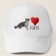 For all the people who have black and white or Tuxedo cats, this trucker hat is for you. Susang6 designed this hat from a public domain illustration of a cat. The text and red heart were added to cute a purrfect design. Buy this sunhat for yourself or give to someone who loves cats.