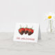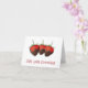 Three strawberries depicting humorous "Live, Love, Chocolate". A nice card for Valentine's Day.