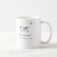 The map of the world, a small airplane... white mug with a line to write your name and special quote or slogan