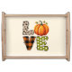 Celebrate the coziness of autumn with this charming "LOVE" serving tray, featuring a pumpkin as the letter "O" and stylish polka dot letters. Perfect for fall lovers, pumpkin spice fans, and anyone who adores autumn aesthetics.