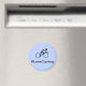This is a fun magnet for a keen cyclist, depicting a pictogram of a single cyclist and the hashtag slogan #LoveCycling. The background is light blue, and the 'V' of Love has been transformed into a red heart.