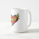 This comic-style graphic mug features the name "Kelly" over a beautifully designed energetic heart design. This is a great gift for your friend, girlfriend, wife, and sister.