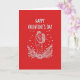 This greeting card shows a couple hugging at the center, drawn in simple white lines against a deep red background. Their faces are close, and their eyes meet in a quiet, loving moment 🥰. Around them is a wreath of leaves with a small flower, also outlined in white, like a gentle frame for the scene. Small hearts float around the couple in different sizes, adding a sweet touch without taking over the picture. At the top, the words “HAPPY VALENTINE’S DAY” appear in a friendly, handwritten-style look, also in white, standing out clearly on the red. The limited colors keep your attention on the couple and the feeling between them. It’s an easy card to give when you want to say “I care about you” in a simple, honest way ❤️. Hope it helps you share your Valentine’s Day sentiments with someone special.
