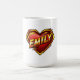 This comic-style graphic mug features the name "Emily" over a beautifully designed energetic heart design. This is a great gift for your friend, girlfriend, wife, and sister.