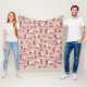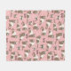 Hand-drawn ferrets, xoxo and hearts pattern fleece blanket, pink background.