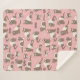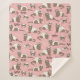 Hand-drawn ferrets, xoxo and hearts pattern sherpa blanket, pink background.
