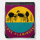 a vibrant design of three flamingos standing gracefully among lush plants, set against a sunset-inspired background. The bold "LOVE FLAMINGOS!" text adds a playful touch, making it perfect for flamingo lovers and those who appreciate unique, colorful accessories. Ideal for everyday use or as a fun gift!