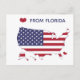 NewParkLane - Fun, state pride postcard, featuring a map of the United States with the American flag, and a red heart, and quote: 'Love from Florida'.