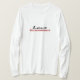 I love this shirt. I had written to the artist asking her if this picture was available on a shirt, and she wrote me back telling me where I could find the shirt. These shirts can be custom made to have a different saying. I loved this saying and went with it. The artist wrote me back later to tell me that she had seen my order go through. How's that for service? Pretty special. It's just as displayed. Perfect!