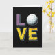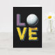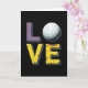 This card features the word “LOVE” centered on a solid black background, with the “O” replaced by a white golf ball. The “L” is a muted purple, while the “V” and “E” are a worn yellow, and all the letters have a slightly rough, used look. The golf ball shows clear dimples and a few light smudges, like it’s been out on the course. Each letter and the ball have a dark blue-gray shadow that makes them look raised off the card. The text “LOVE” is in big, thick block letters, and it sits right in the middle so it’s the first thing you notice. Overall, it feels like a sweet nod to someone who loves golf, with a simple message of affection ❤️❤️❤️