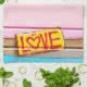 LOVE Graffiti dish towel, pink, tan & blue Kitchen Towel