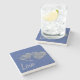 Two gray hearts with blue jean background, Marble Stone Coaster.