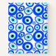 Cool notebook printed on the front with the word LOVE. The letter O is created using a circular Greek Eye symbol. The rear of the notebook is printed with a bright pattern of evil eye symbols. Very stylish notebook, with a Mediterranean theme. The wire spine is white, however you can alter this to suit your taste. Crisp white notebook, printed with a bright blue Evil Eye graphic design. This symbol is regarded as a good luck charm or talisman.