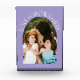 Modern and minimal family memory photo block featuring a photo in a arch frame with a text that says "Love Grows Here" with tiny hearts. Lilac.