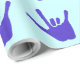 Painting of a hand in blue, showing the sign language for love, is tiled on wrapping paper. The background color of light blue can be customized.