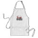 The apron is of very good quality. I used it while icing cookies. The dark colored icing washed off of the apron very well! The neck strap is sturdy and easy to resize on the adult size apron. The print was clear and well defined. I am glad I was able to personalize with name.